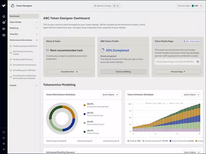 From token launch planning to protocol optimization, Forgd offers FREE self-service tools designed to solve the most critical all successful projects need.
