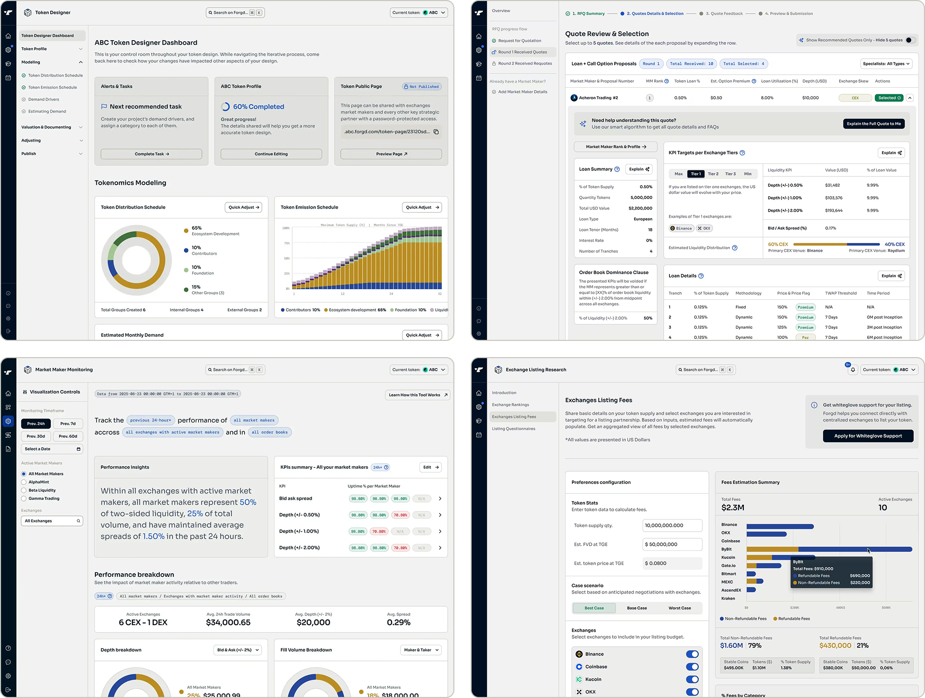 Forgd combines token design, market maker analytics, and exchange data intelligence in one integrated ecosystem.
